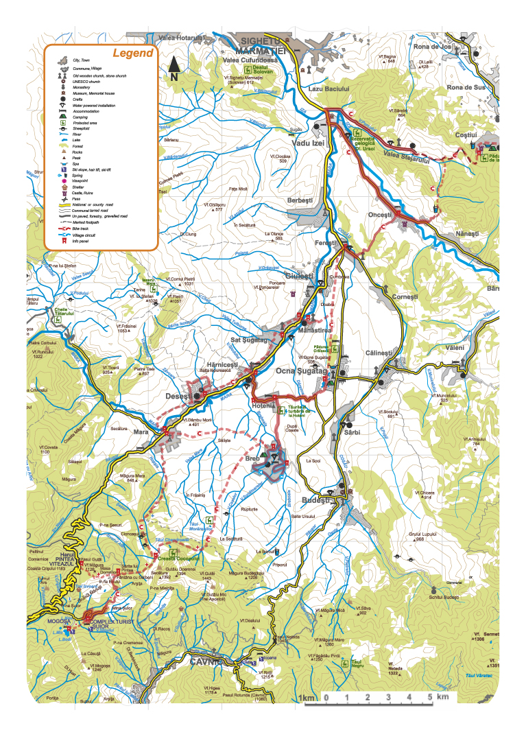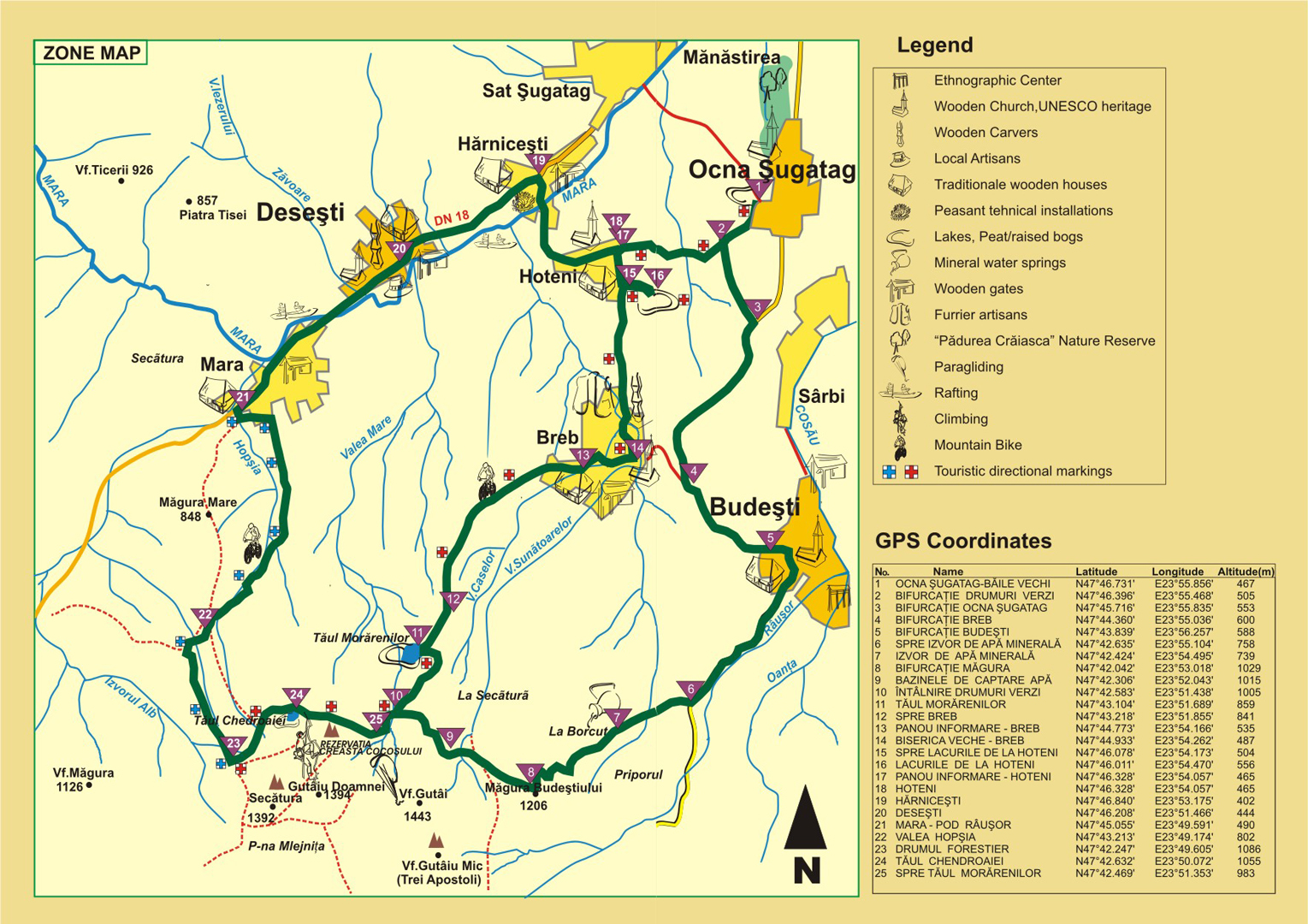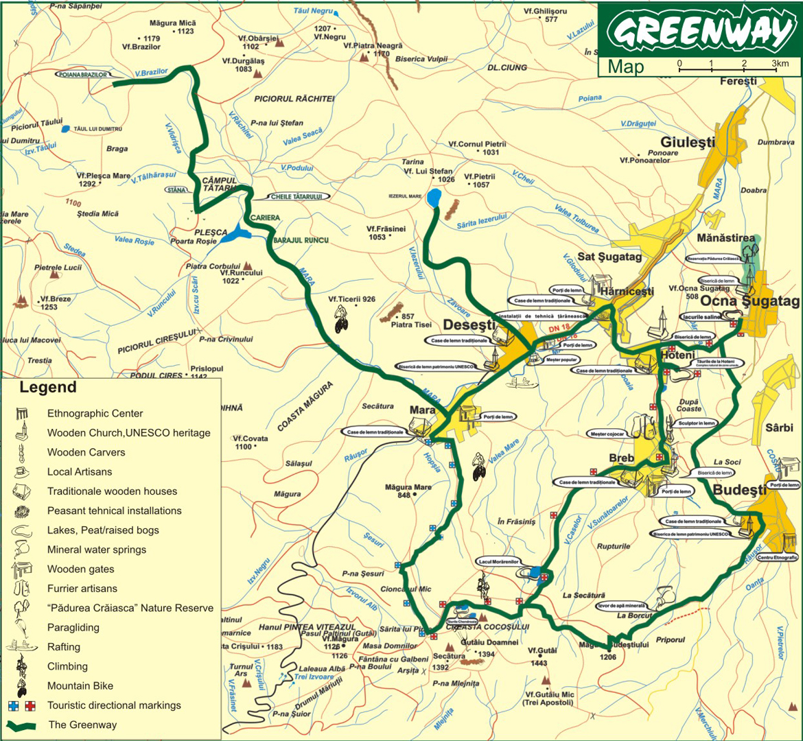 • 7 sate reprezentative pentru cultura maramureșeană din Munții Gutâi și Valea Râului Mara: Ocna Şugatag, Budeşti, Breb, Hoteni, Hărniceşti, Deseşti şi Mara.